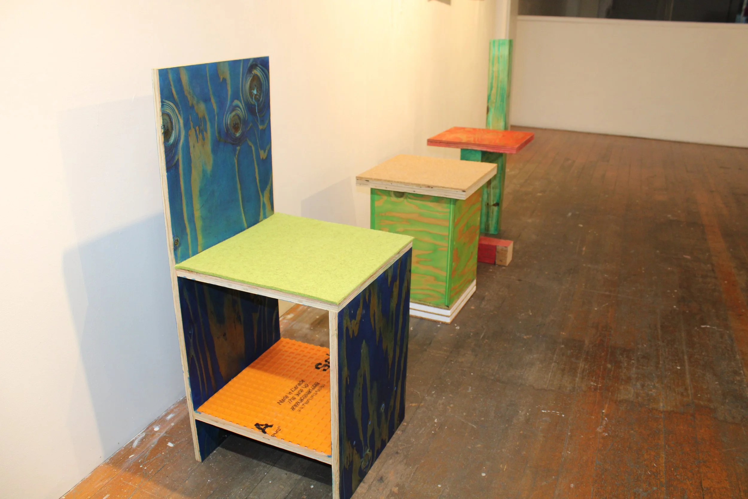 This project began on a construction site while working with CDX plywood, a sheathing material usually hidden beneath houses, sheds, and quick builds. It is a grade of wood that is rarely celebrated, full of knots, chips, and imperfections, yet I was drawn to its surface. The grain carried a record of stress, weather, and growth, and the flaws felt like stories.