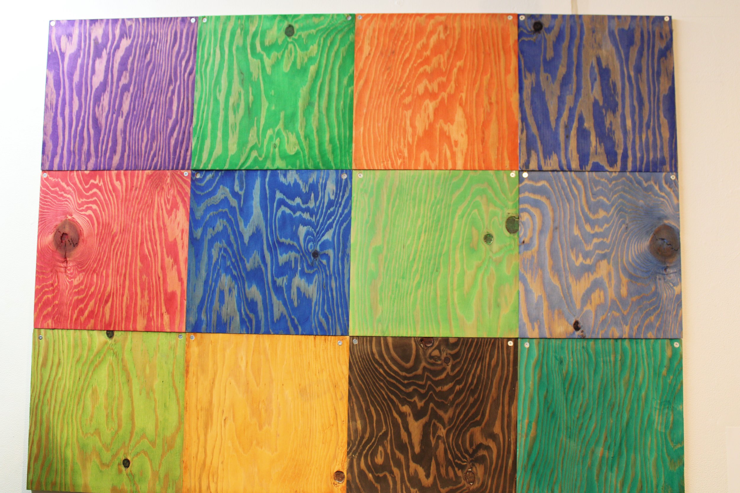 To bring those stories forward, I developed a process using recycled oil paint an abundant material at the art studio. This reveals the plywood’s hidden patterns, bringing out the knots and seasonal shifts in the layers.
