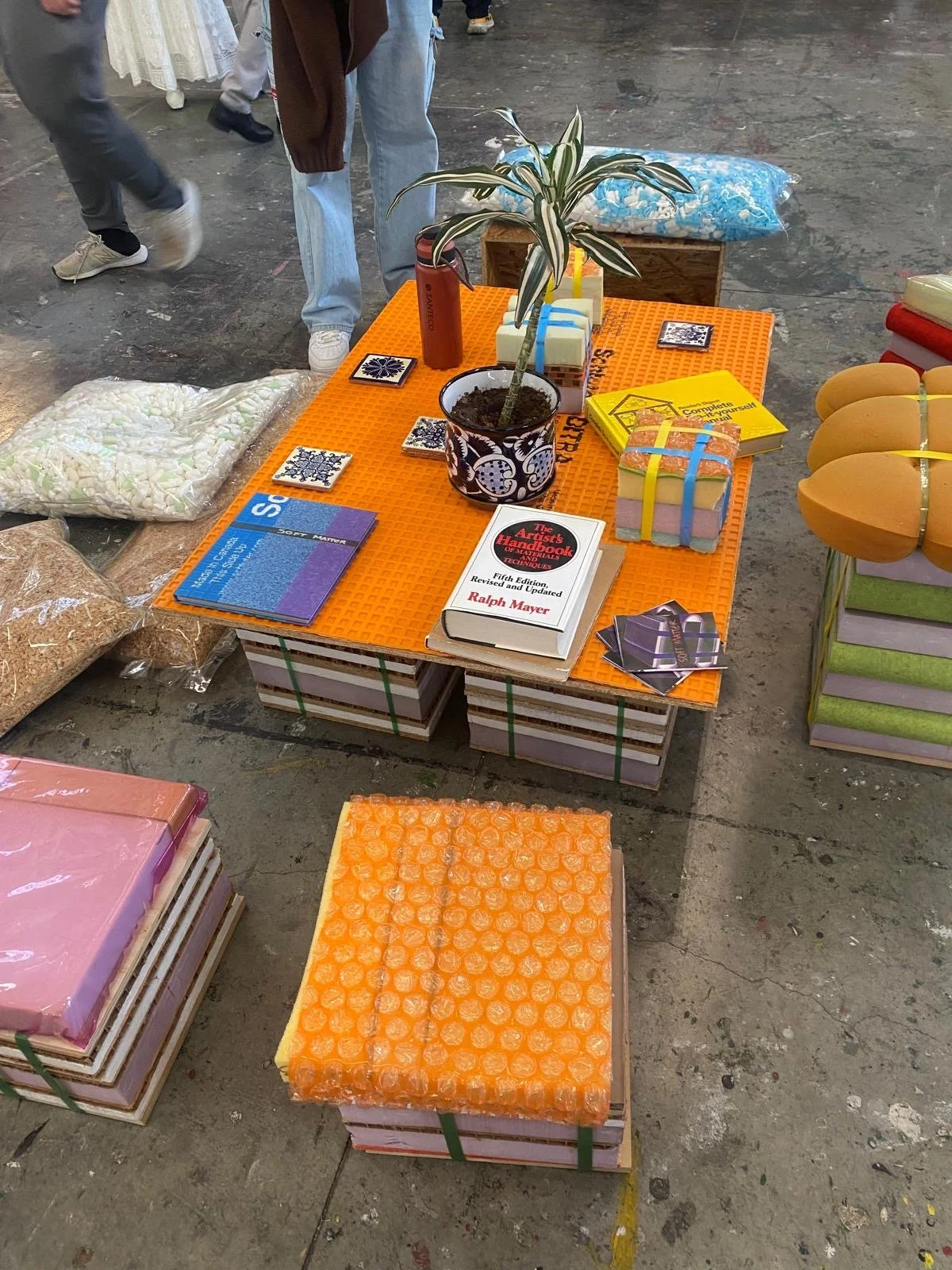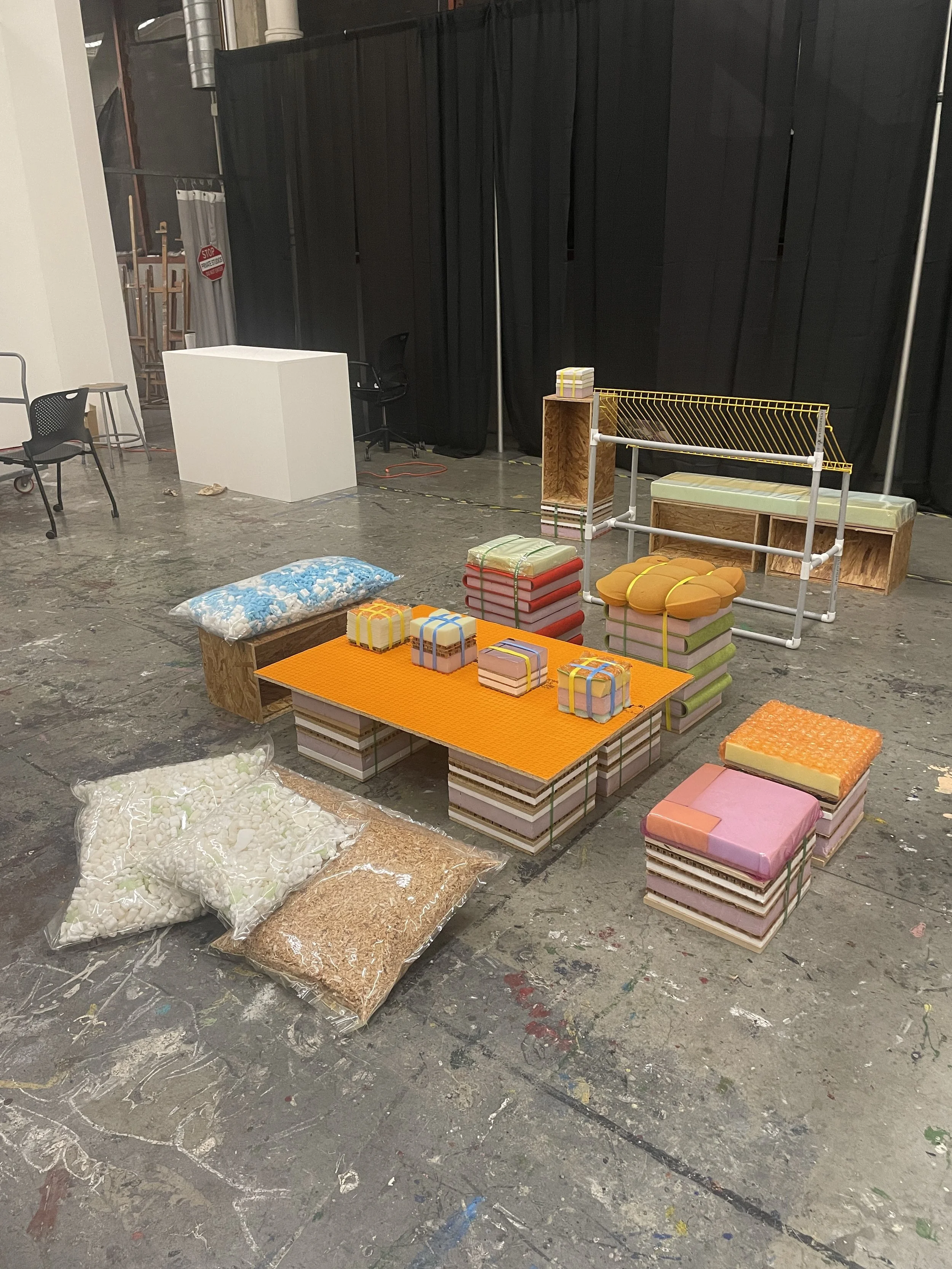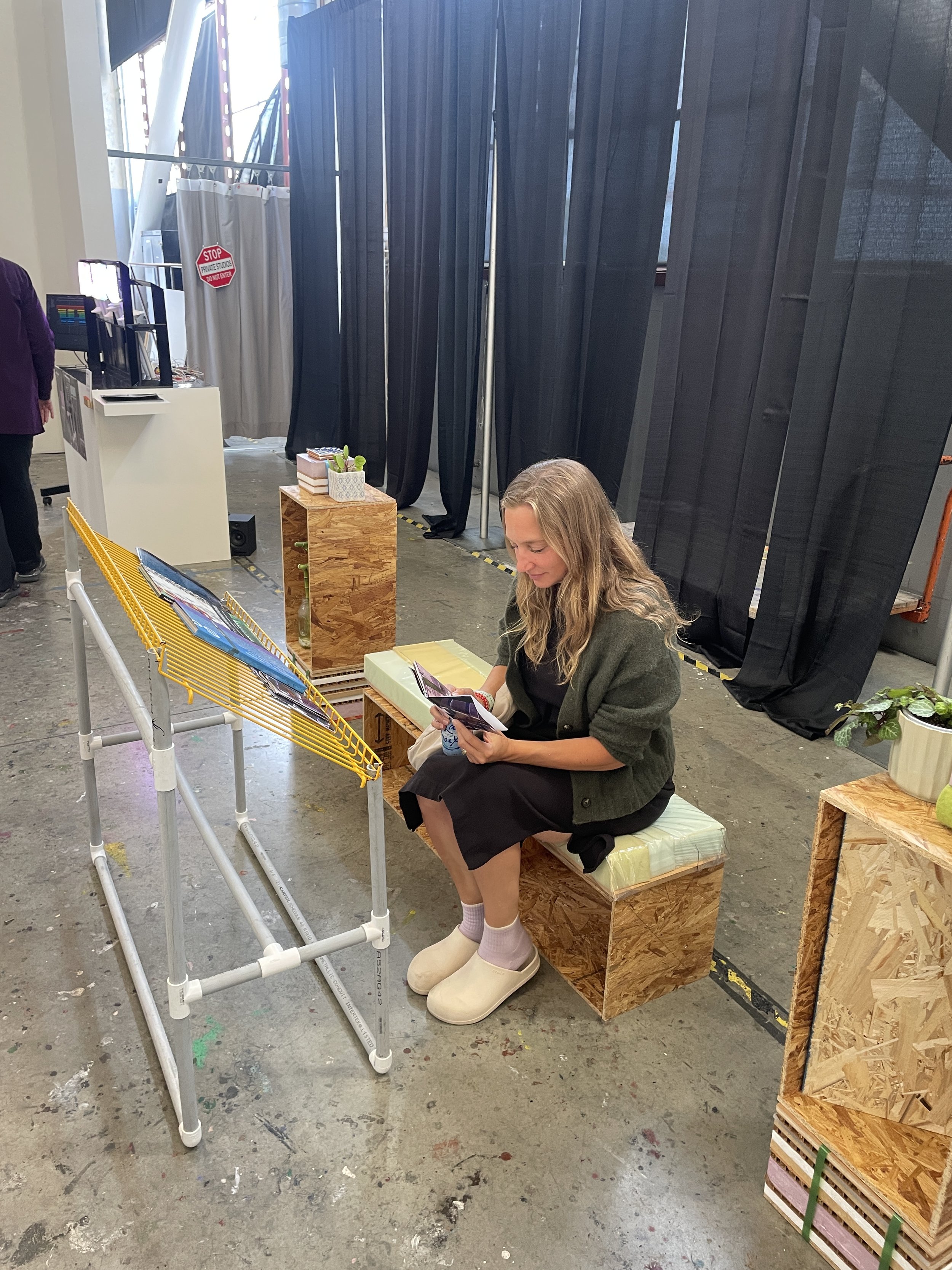 For MAKE/SHIFT, the 2025 MFA Design Thesis Exhibition, I fabricated the fixtures that supported banners and OSB shelving for books. Working closely with the exhibition graphics team, I helped translate the visual identity of the show into physical form. Together we chose OSB sheathing as the primary material, highlighting its raw, utilitarian qualities while ensuring a cohesive presentation across the space. The fixtures provided practical support for the exhibition while reinforcing the overall design language of the showcase.
